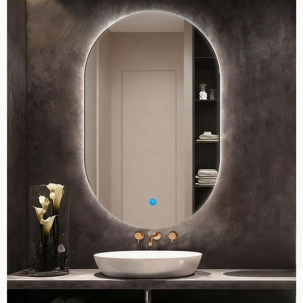 Espejo con cantos pulidos en forma de píldora de 4mm con botón touch.